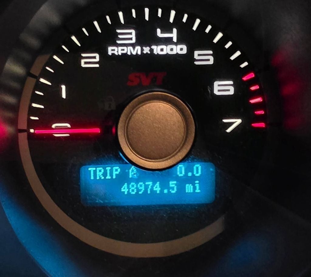 - Brushed aluminum accented 6-gauge instrument cluster -inc: message center, compass, SVT graphics
