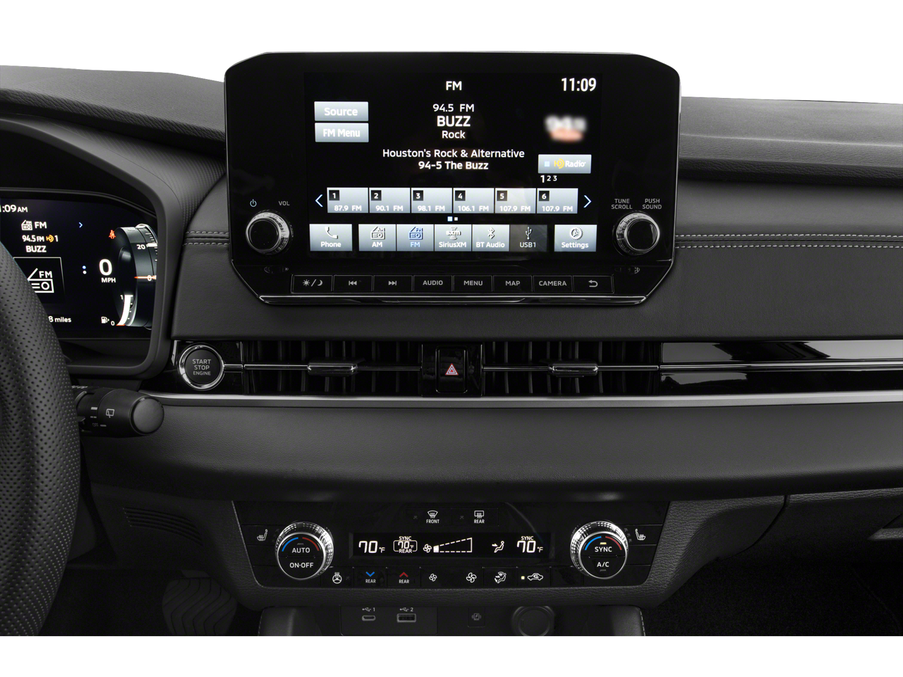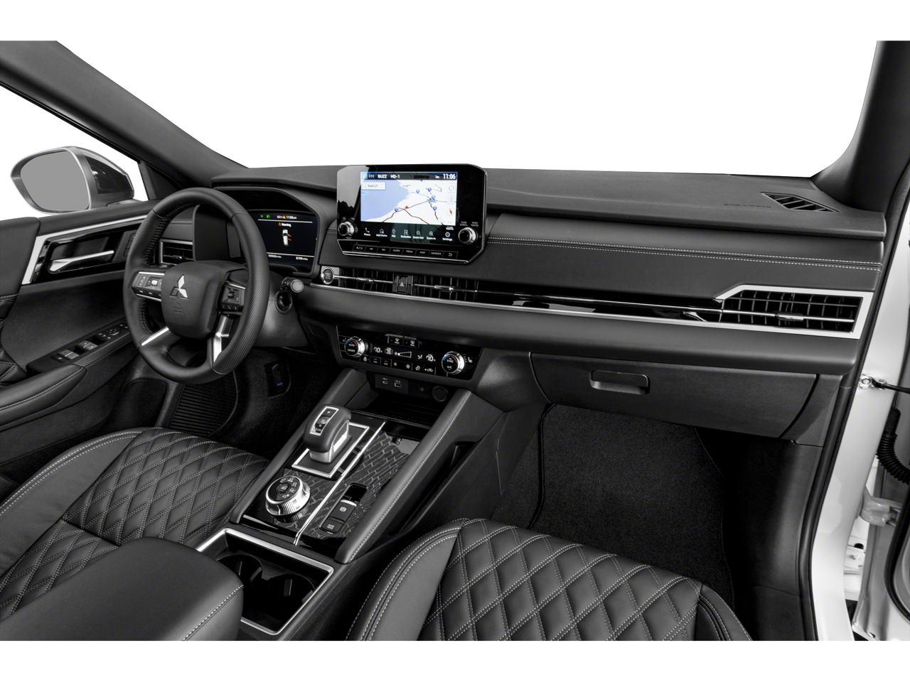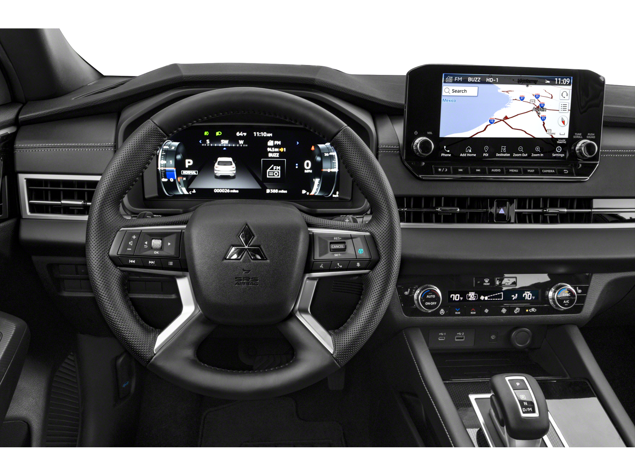 - Radio: AM/FM 9.0" Navigation w/Smartphone Link -inc: 6 speakers, Apple CarPlay, Google Android Auto, SXM all-access and SXM traffic and travel link w/90-day subscription, Mitsubishi Connect, HD Radio, Bluetooth wireless technology, steering wheel controls for phone, audio and voice recognition and USB ports