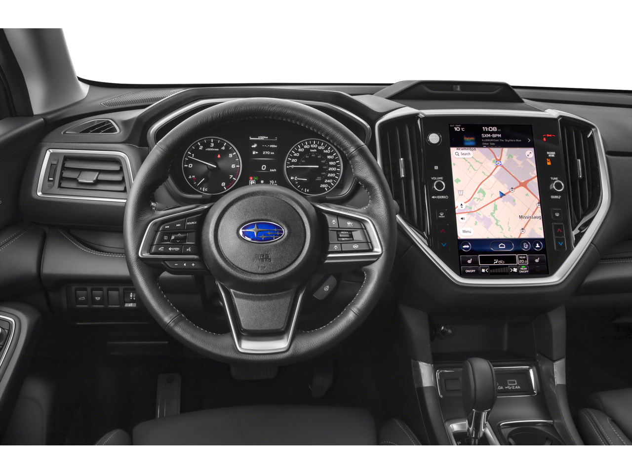 - Radio: Subaru STARLINK 11.6" Multimedia Plus System -inc: AM/FM stereo HD Radio, multi-touch gesture high resolution display screen, voice activated controls, Bluetooth audio streaming and hands-free phone connectivity w/SMS text messaging connectivity (refer to subaru.com for cell phone compatibility), Near Field Communication (NFC), iPod control capability, SiriusXM All Access radio (4 months free trial/subscription required after), SiriusXM Travel Link (4 months free trial/subscription required after), smartphone integration for Android Auto and Apple CarPlay w/full screen view and wireless connection and STARLINK cloud applications, USB and Over The Air (OTA) audio system update, steering wheel controls for audio and Bluetooth, 6 speakers, 3.5mm illuminated auxiliary input jack, and illuminated USB A and C input/charge ports